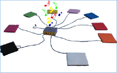 3、游戏模式二:小朋友跳到不同音符的地毯上可激活不同音乐