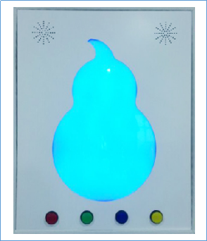 功能:学生可控制丰富多彩的背光按钮,按下颜色按钮可产生相应的背光颜色,按动声音控制按钮可产生相应的声音,音量响度调节。训练视觉辨别和学生控制环境变化
